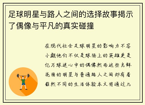 本文旨在探讨足球明星抱胸动作所展现出的自信与魅力的独特姿态及其背后故事。我们将从四个方面进行详细分析:首先,探讨这一动作如何体现运动员的自信心和内在力量;其次,分析这一姿态在比赛和公众场合中的不同表现;第三,研究抱胸动作在足球文化中所承载的象征意义;最后,回顾一些知名足球明星如何通过这一姿势增强个人形象。通过全面的解析,我们希望能够深入理解这一看似简单的动作所蕴含的丰富内涵。 1、展现自信与力量...